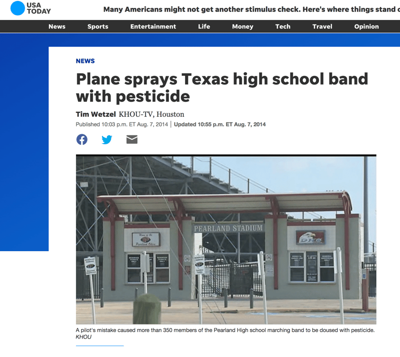 The freaking airplane or crop duster, had just crop dusted the band. Humans. It dumped pesticide on human beings.